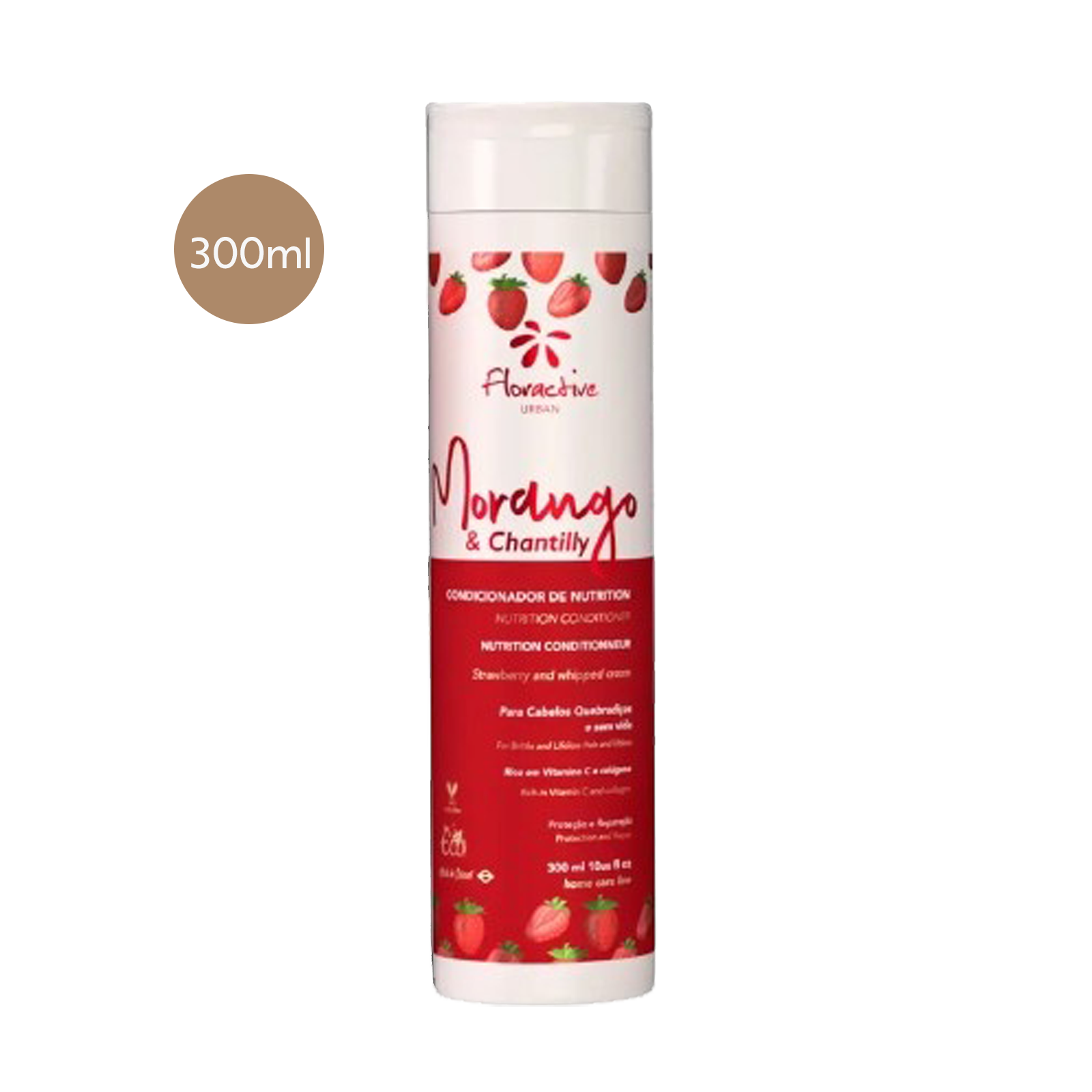 The Strawberry & Whipped Cream line was developed for brittle and lifeless hair, it is rich in vitamin C and collagen, protecting and repairing the strands.